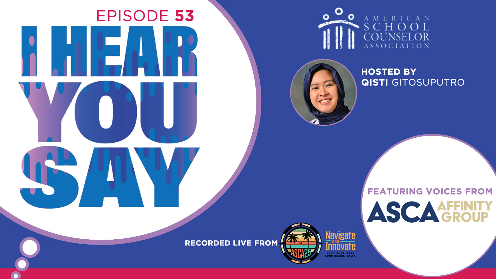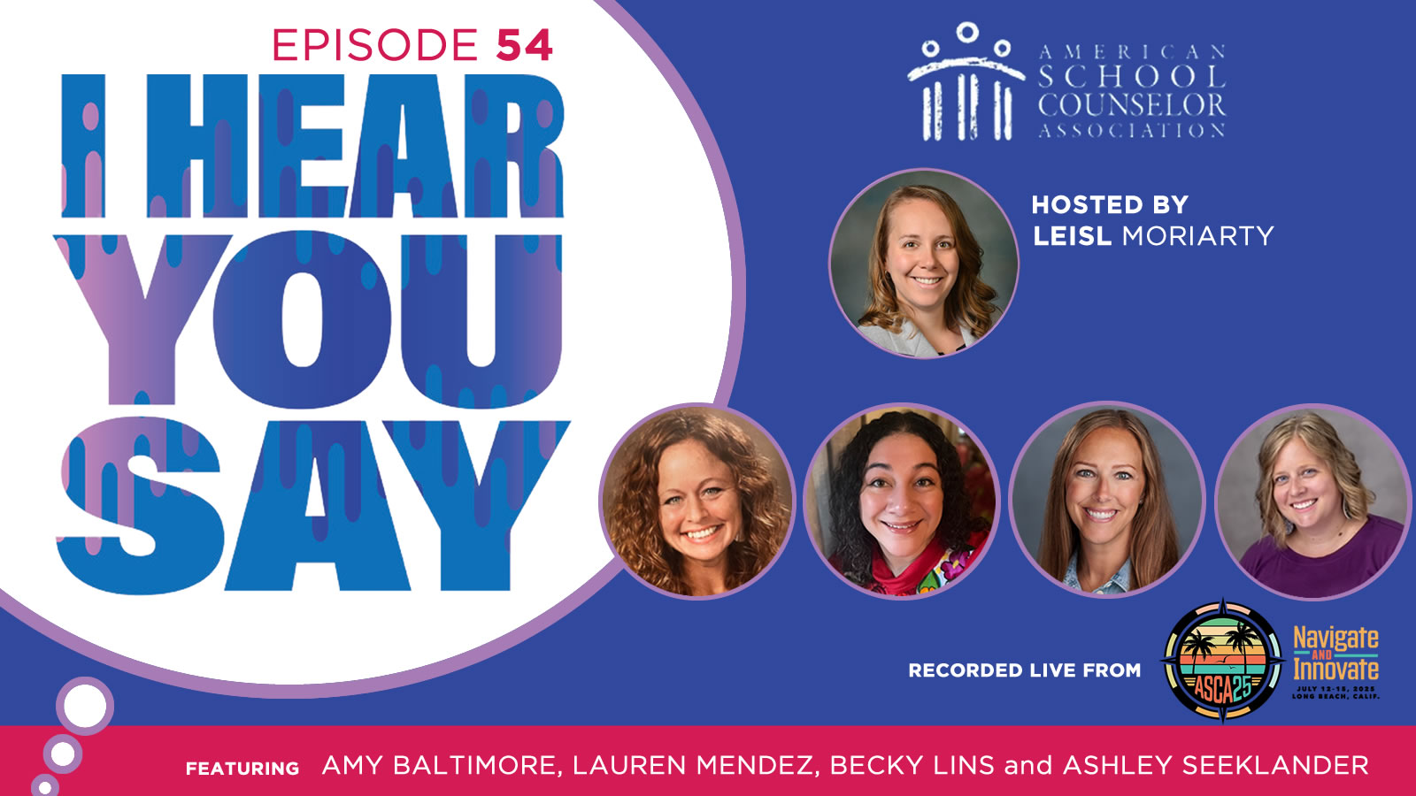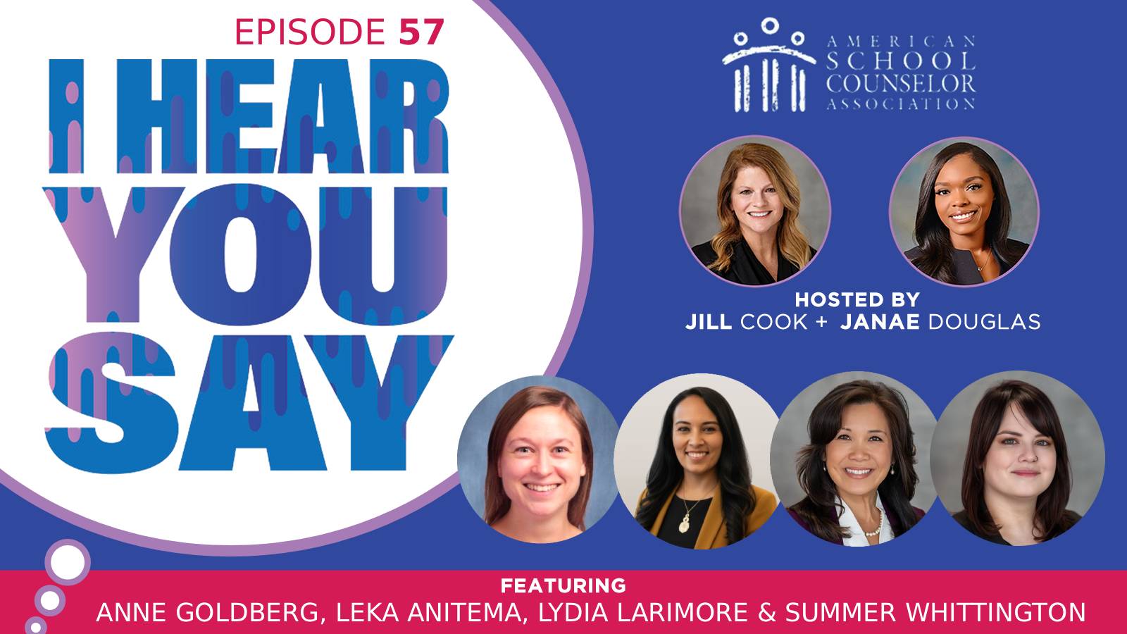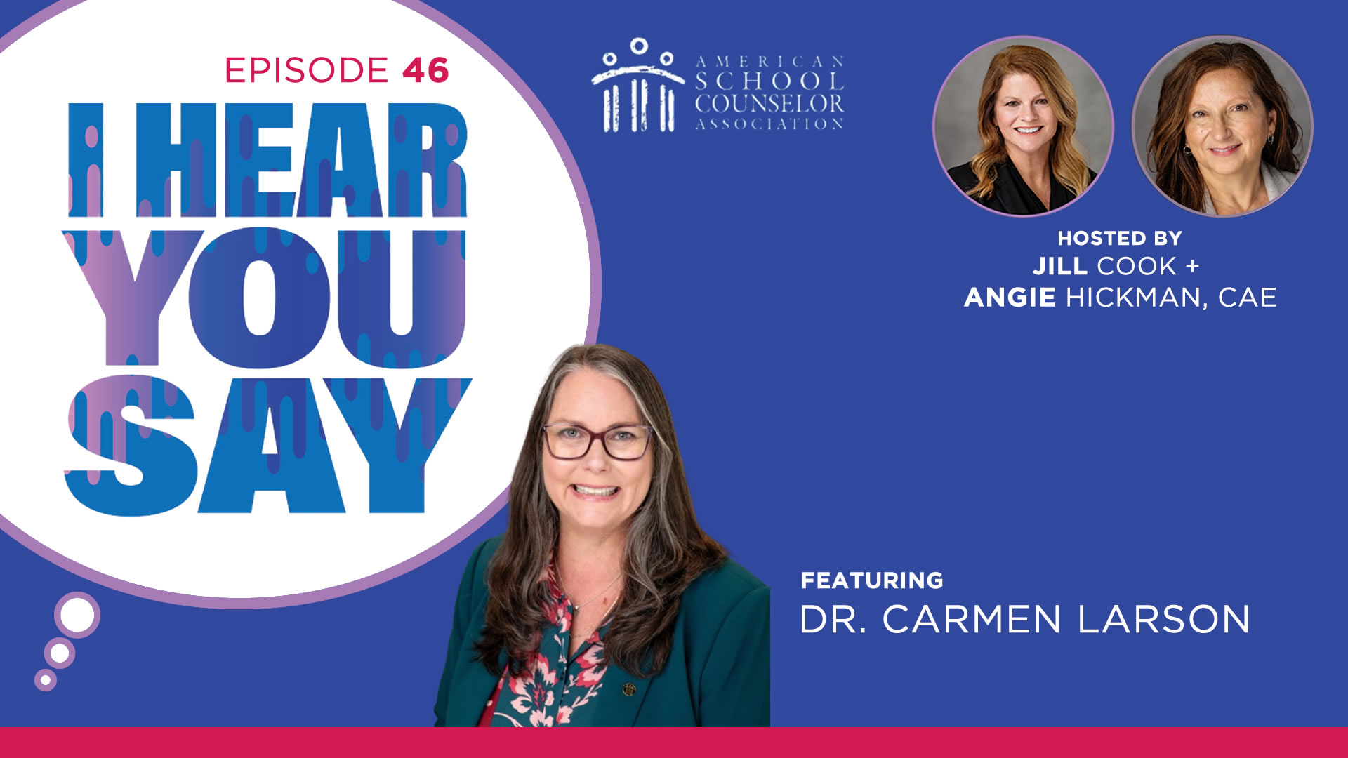 Join hosts Jill Cook, ASCA executive director, and Janae Douglas, ASCA education and training coordinator, for conversations with school counselors and education leaders. Whether you’re looking for expert advice, inspiring stories or updates on best practices, I Hear You Say provides a trusted space for learning and connection within the school counseling community.